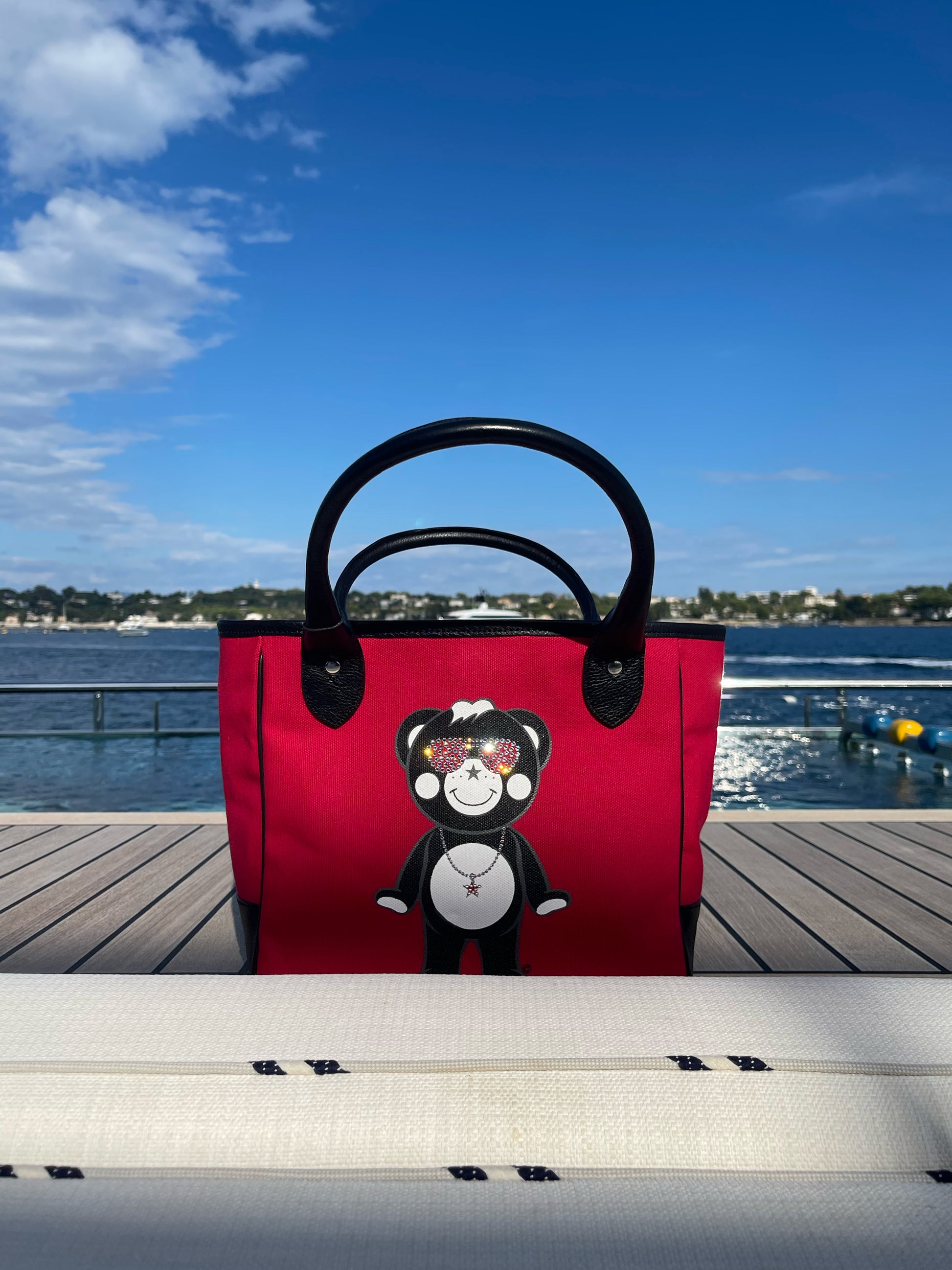 CUTEST LUXURY MINI-TOTE BAG WITH 'CRYSTALS FROM SWAROVSKI' & LEATHER DETAILS.